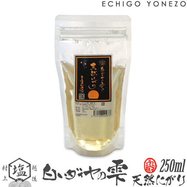 [越後塩 ミネラル工房] 白いダイヤ の雫 天然にがり 250ml チャック付きスタンド袋 越後村上中浜産 天然にがり100% 食品添加物 無添加 オーガニック 手造り salt organic ocean water niigata made in japan