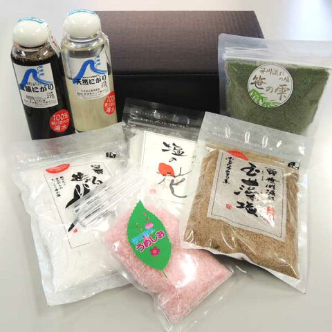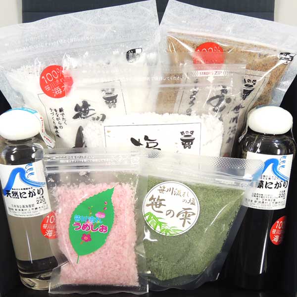 [越後塩 日本海の塩] 越の塩 日本海の塩 笹川流れ塩セット 全七品 笹川流れの塩 玉藻塩 塩の塩 笹の雫 うめしお 天然にがり 玉藻にがり 手造り 日本海企画 海塩 藻塩 北海道昆布塩 越後村上nigari salt niigata sea salt ocean water made in japan